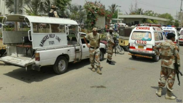 கராச்சியில் மூத்த காவல்துறை அதிகாரிகளின் மீது ஓடும் வாகனத்தில் இருந்தபடி துப்பாக்கிச் சூடு நடத்திய அதே குழுதான் இந்தத் தாக்குதலையும் நடத்தியிருக்க வேண்டுமென மாகாண காவல்துறை தலைவர் குலாம் ஹைதர் ஜமாலி தெரிவித்துள்ளார்.
