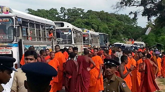 காவல்துறையினரின் பாதுகாப்புடன் சென்றிருந்த பௌத்த பிக்குகள் அந்தப் பகுதியை தமது பிரதேசம் என கோஷமிட்டு உரிமை கோரியதுடன், அங்கு அரச மரக்கன்று ஒன்றையும் நாட்டியுள்ளதாகத் தெரிவிக்கப்படுகின்றது.